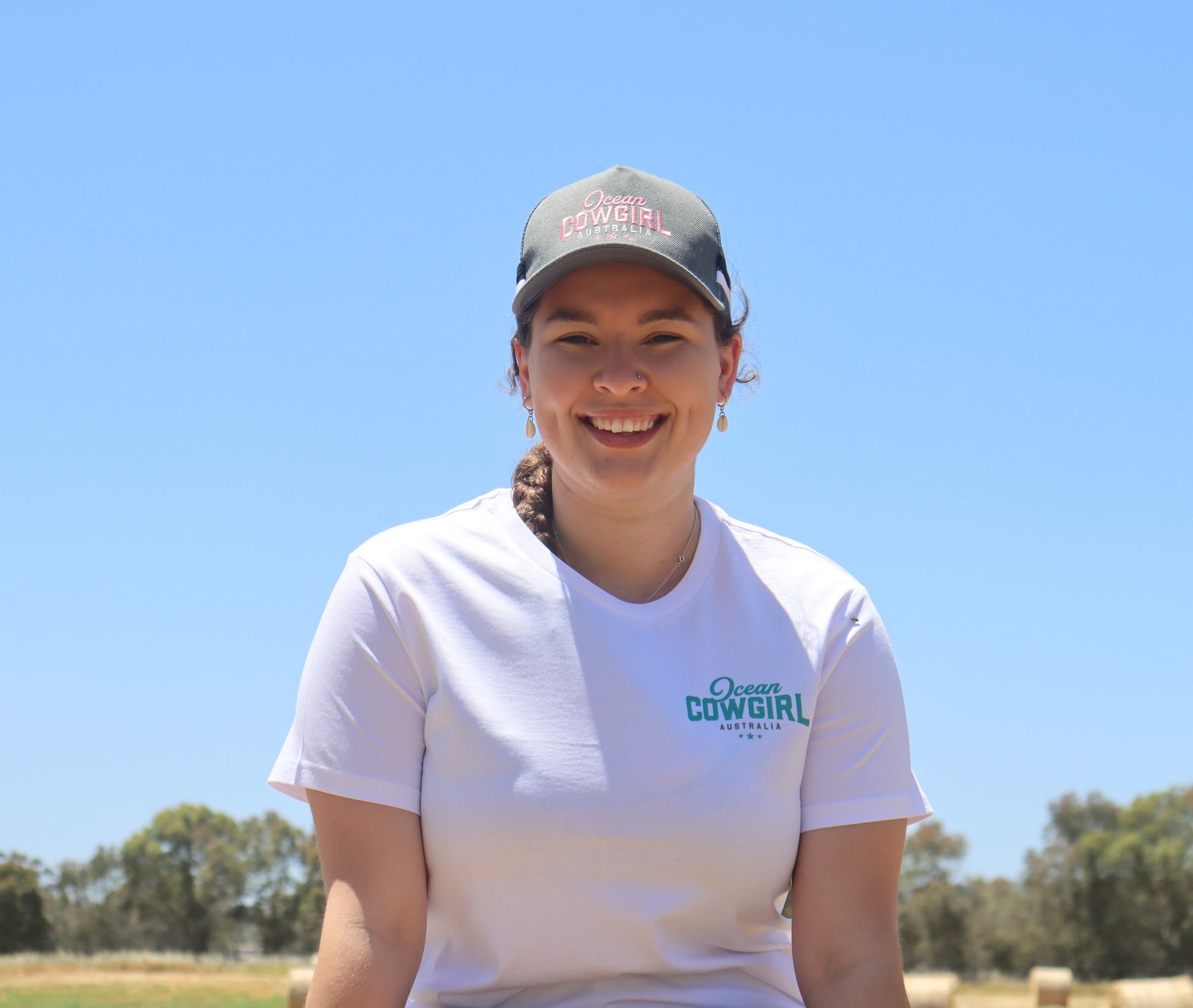 Ocean Cowgirl White Tee - Teal Logo